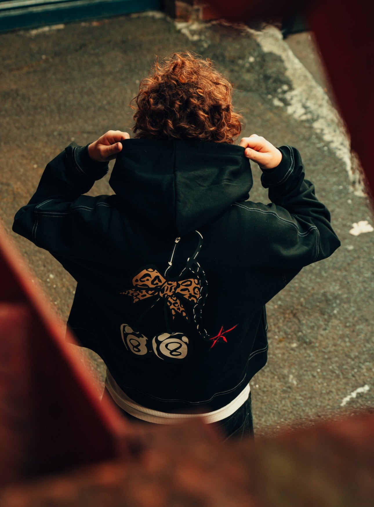 Crafted from a 400 GSM combed cotton blend fleece (80% combed cotton, 20% polyester), the outer shell has a smooth peach face finish that feels substantial yet refined. Combed cotton fibres are longer and cleaner, resulting in a softer hand feel, improved durability, and a sharper surface for printing. The fabric holds its structure while ageing beautifully over time.